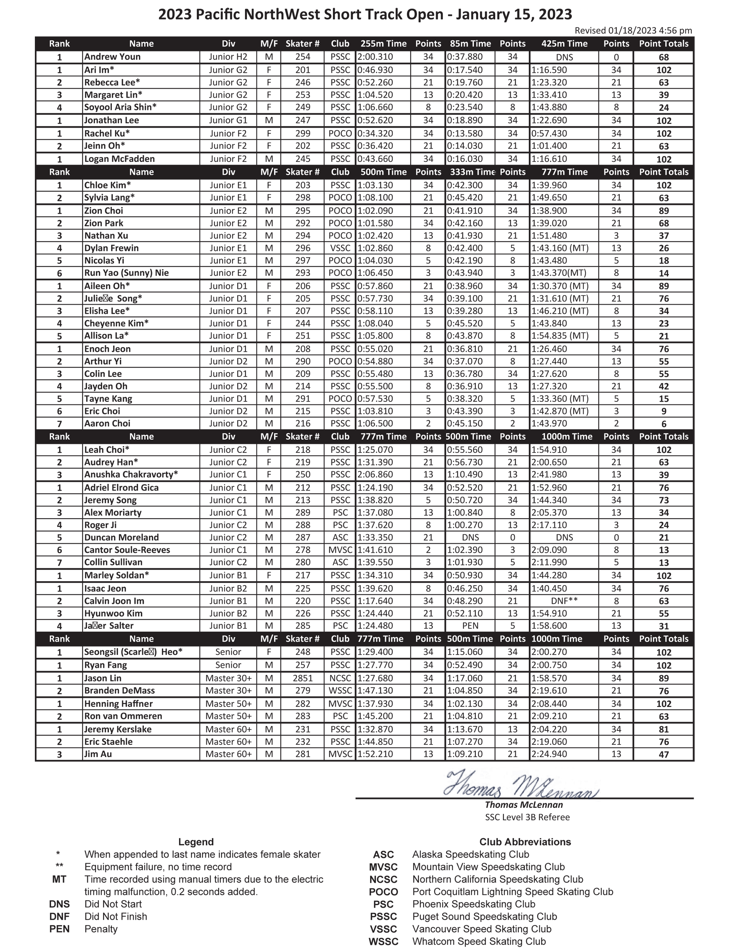 We look forward to seeing everyone at the 2024 Pacific NorthWest Short Track Open.
