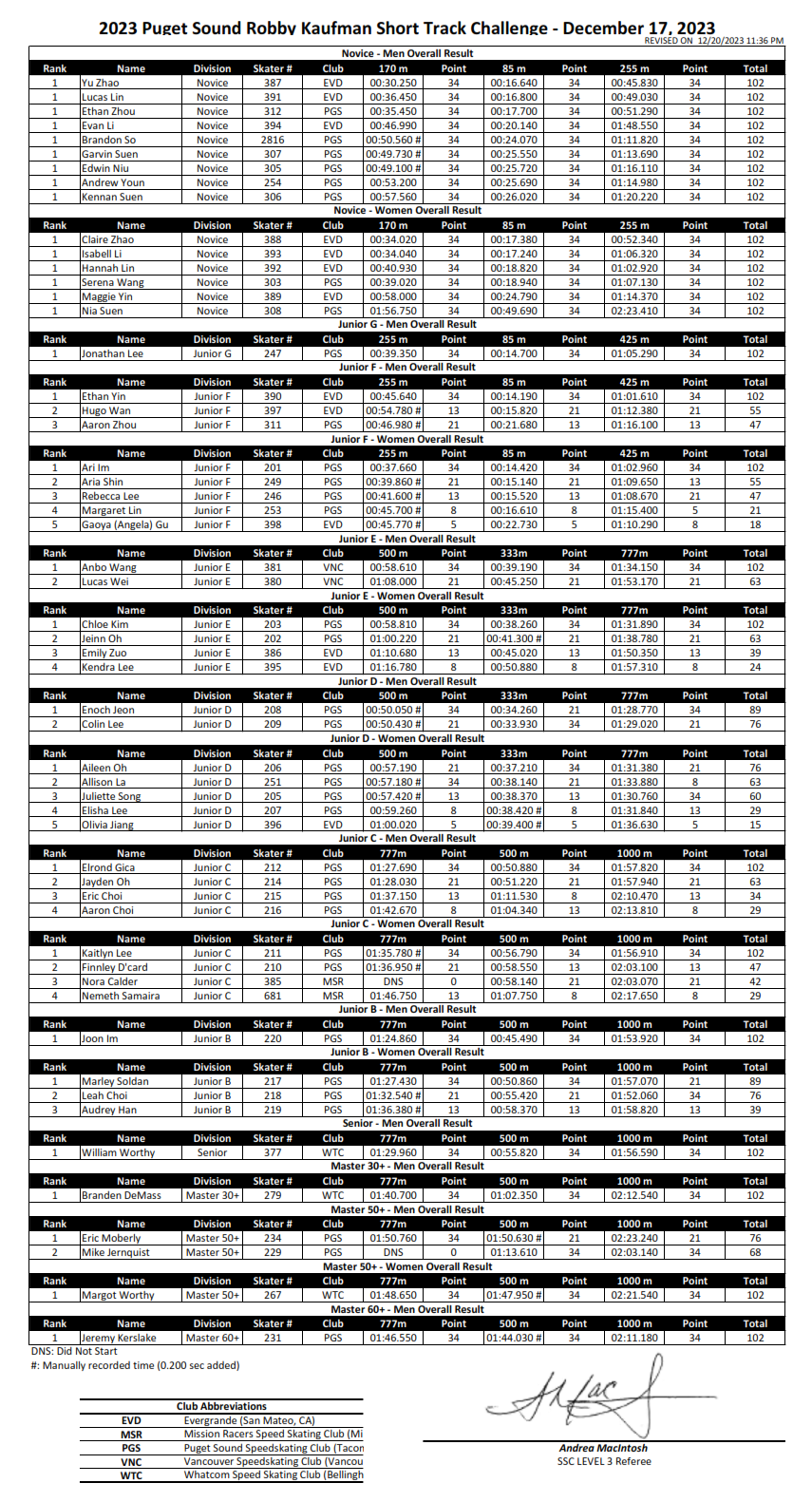 2023 Puget Sound Robby Kaufman Short Track Challenge Posted byLoebotomyDecember 17, 2023June 22, 2024Posted inGalleryTags:2023, Championship Event page with results Francis Lee’s Photo AlbumFrancis Lee on Flickr Nate Greenland’s Photo Album Seok-Ho Kim’s Photo Album Share this: Click to share on X (Opens in new window) X Click to share on Facebook (Opens in new window) Facebook Like Loading... Related