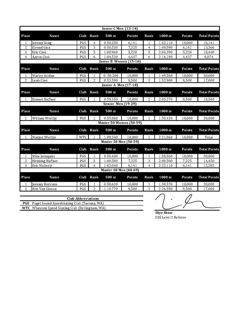 - Sponsored by: Puget Sound Speedskating Club