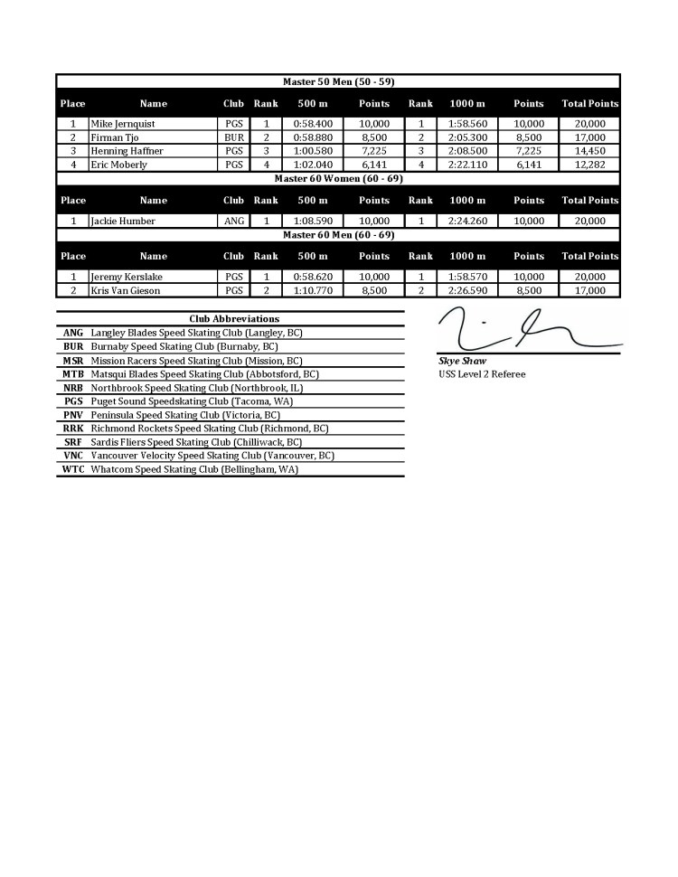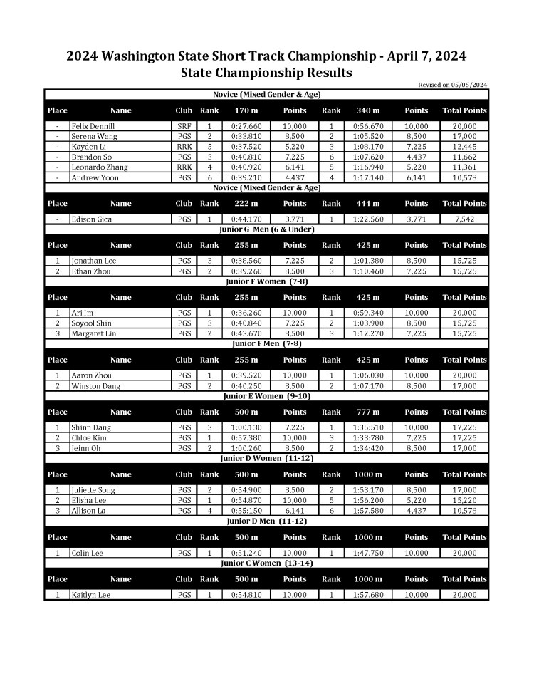 Note: This competition consisted of two events, the Washington State Short Track Championship and the Washington State Short Track Open. The first was open to only Washington State residents and the second was an open international event.